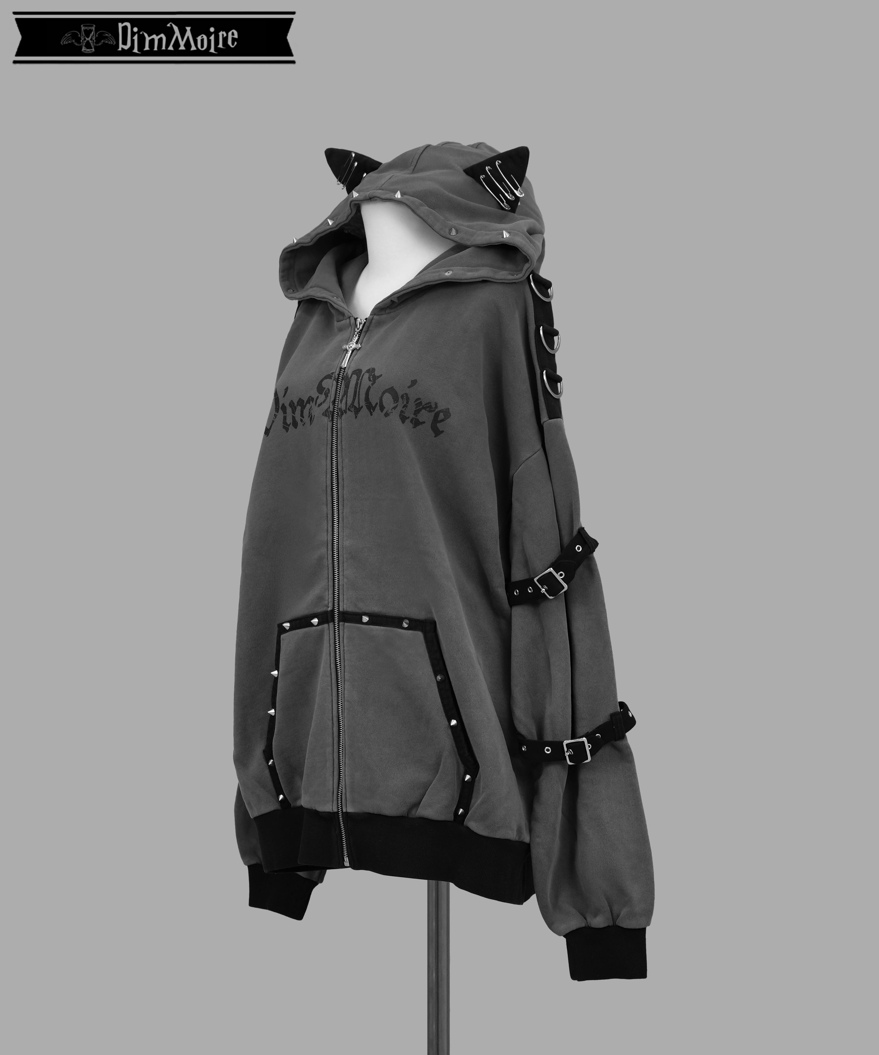 安全ピン、スタッズ、Dカン、ベルトなど装飾がたくさんついたこだわりのデザインです.