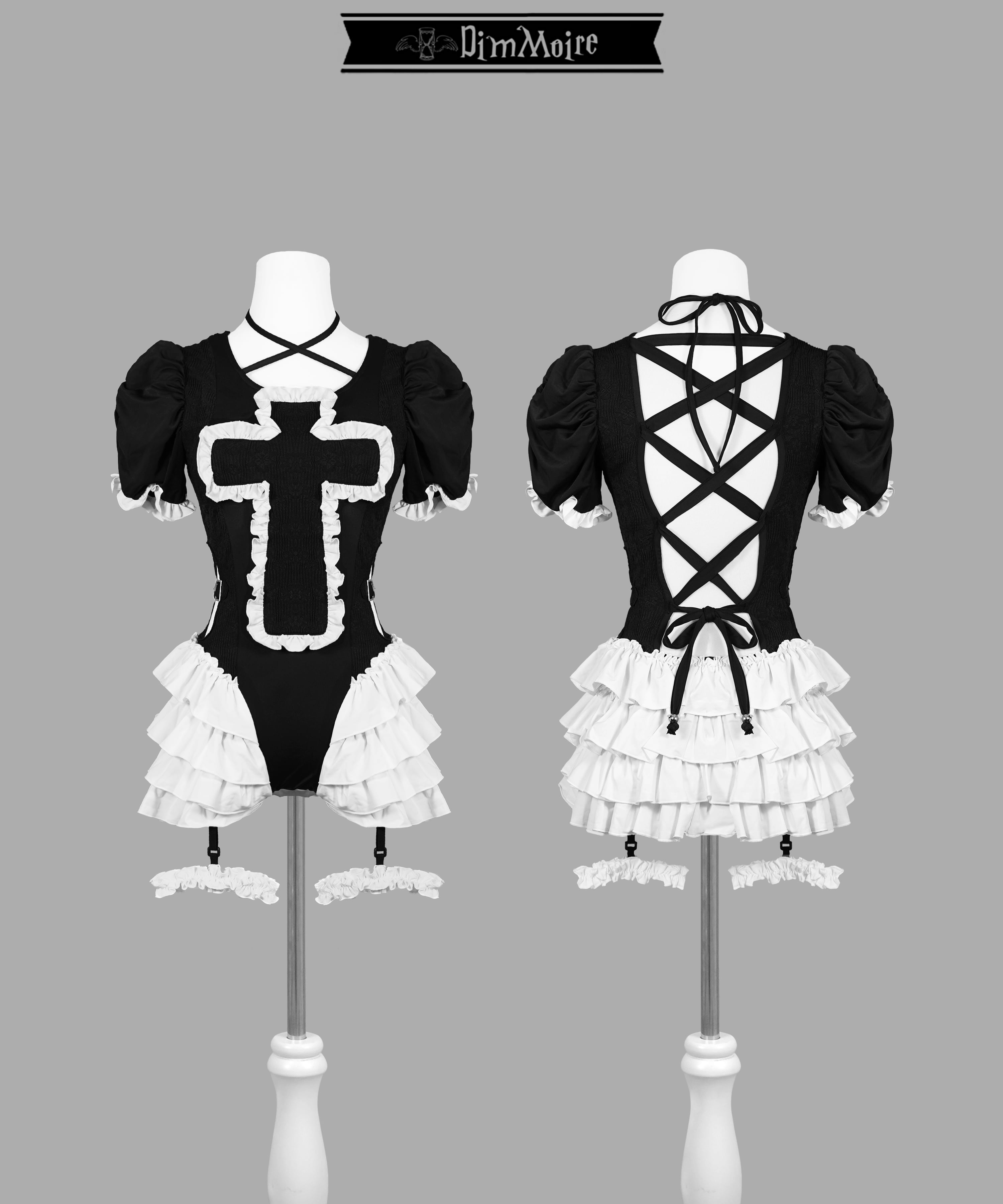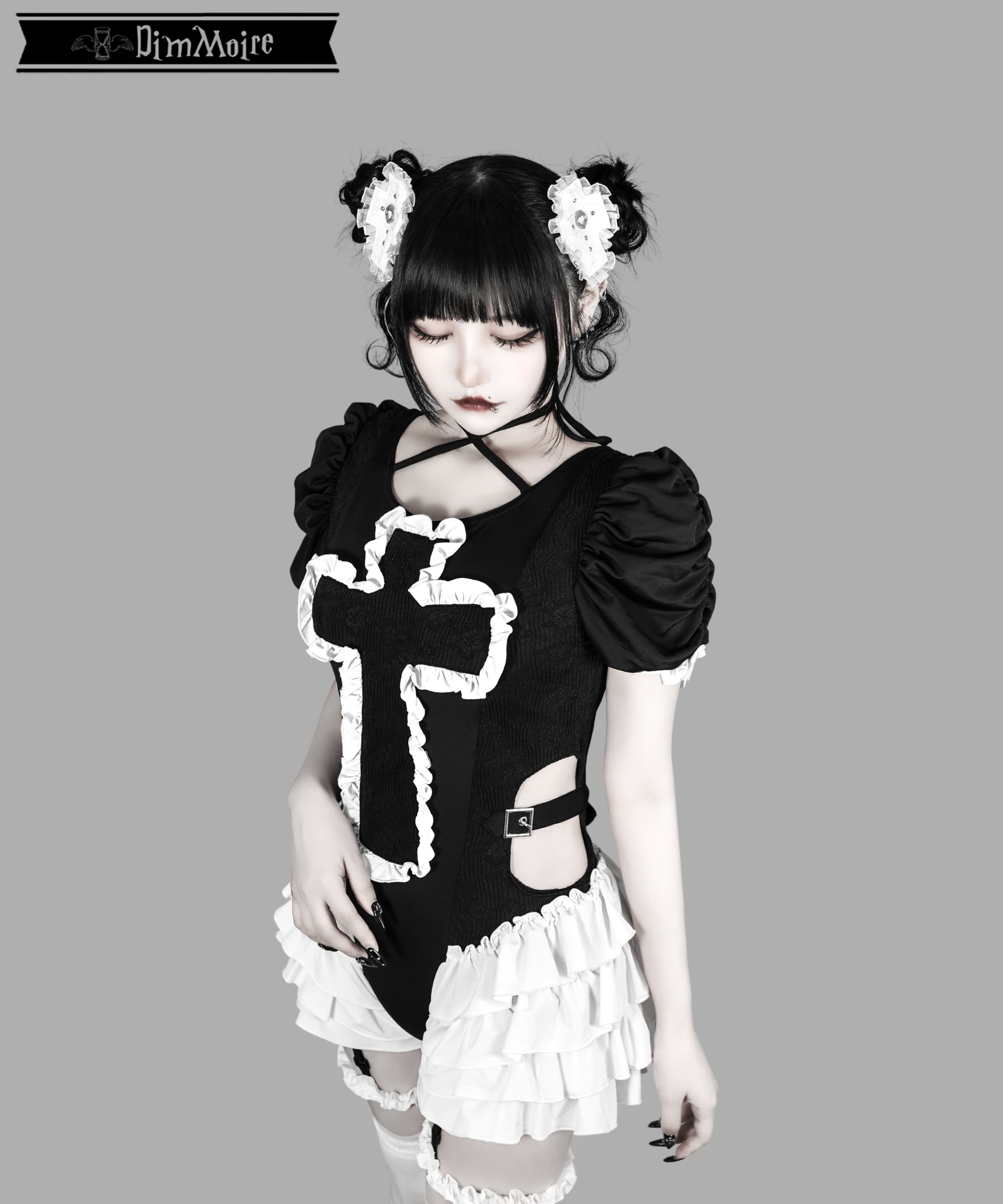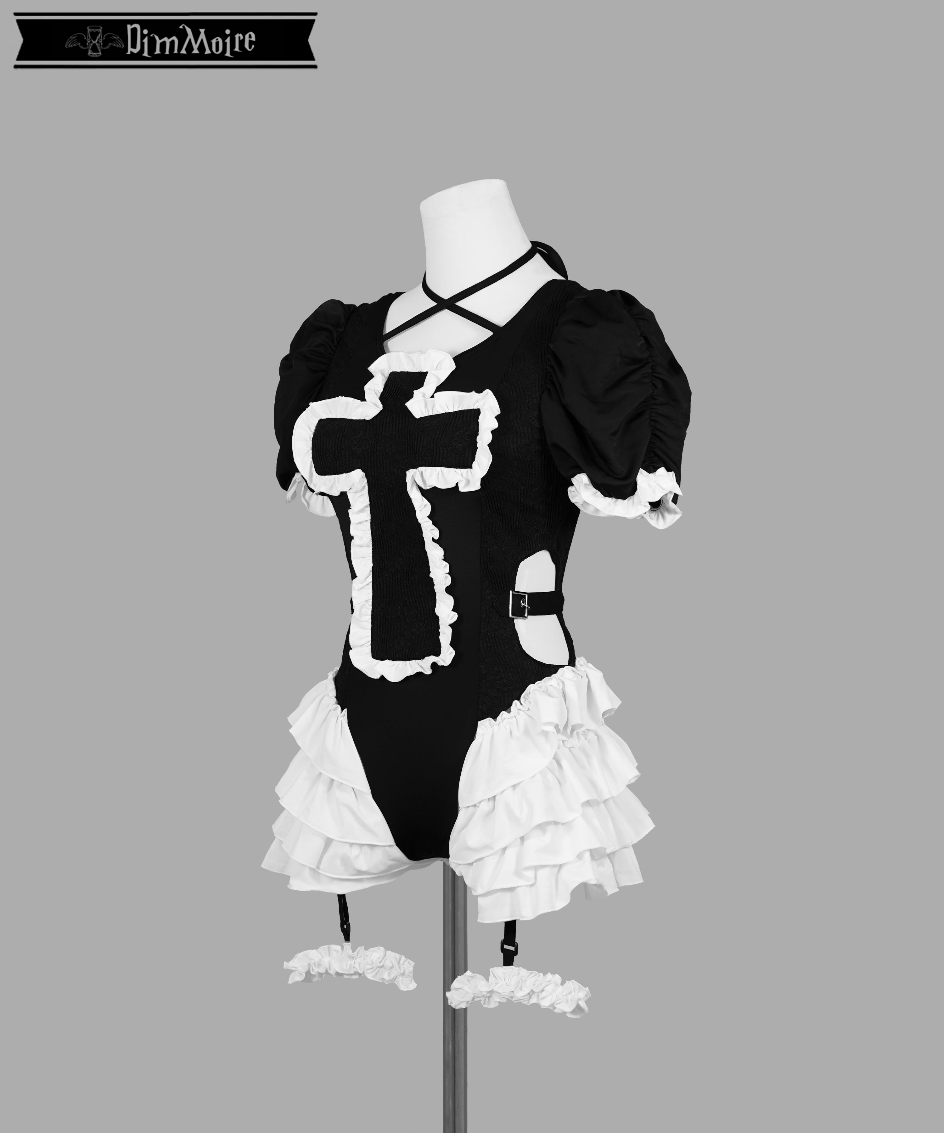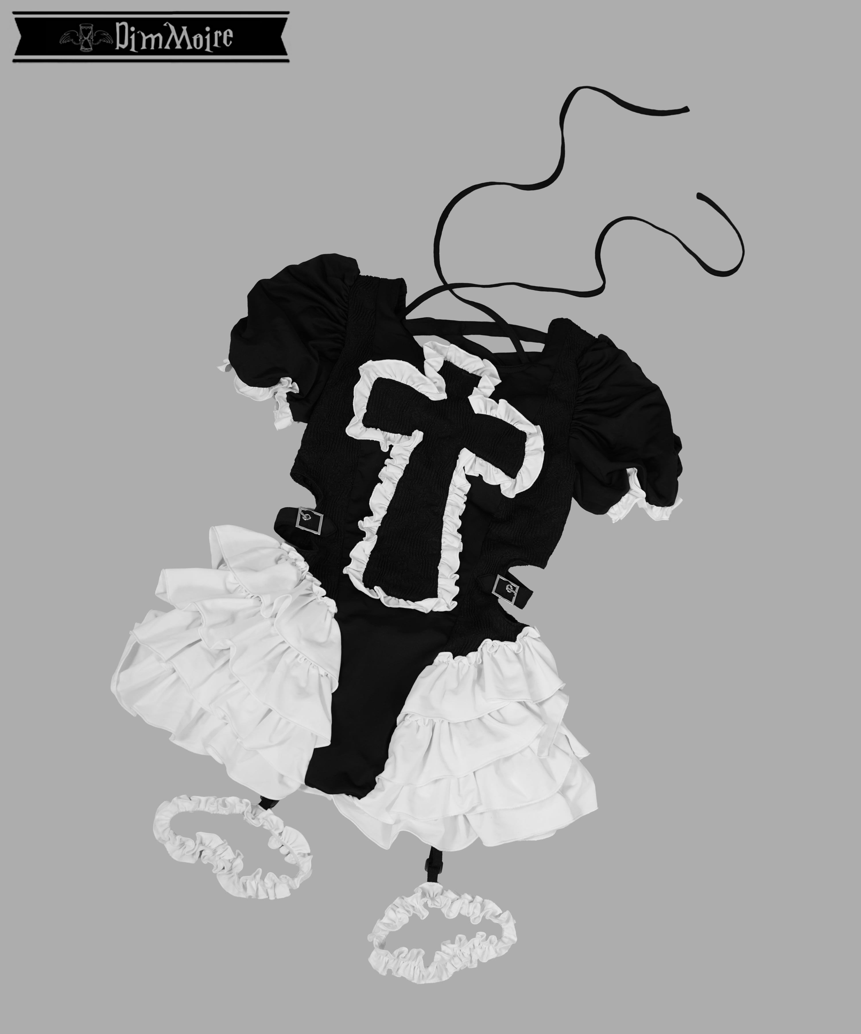大胆にあしらわれた十字モチーフ×フリル×ジャガード生地の切り替えがポイント❢